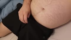 Um cara gordo empurra seu pauzinho na frente da câmera