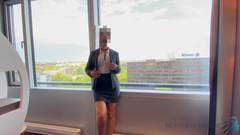 A secretária de negócios adora transar de modo que todos possam vê-la! Desta vez, numa viagem de negócios, ela vai fazer isso num hotel, perto da janela!