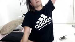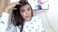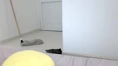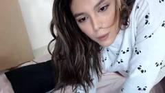 A amante trans tem uma bunda grande e um pau grande. Ela gosta de se deitar no chão frio e se masturbar, até mesmo saborear seu próprio esperma quente.
