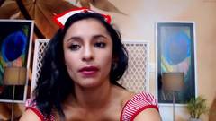 A vadia sexy é uma enfermeira. Ela fez uma consulta após o trabalho com um paciente tatuado em casa, chupou seu pau e foi fodida com um dildo e pinto.