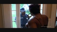 Essa transexual negra peituda se comportou mal, então ela vai receber uma lição desse policial da BBC nesse pornô de ts.