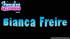 Trans girl, slim e petite Brianca Freire depois de um fellatio mútuo foderá um cara no cu com uma cenoura e assim esticado foderá seu pau, veja!