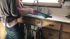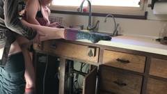 Esse casal amador transa sem parar na cozinha e ela acaba com a cara cheia de porra.
