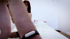 Estou vestida com lingerie sexy e meias, mas não tenho calcinha para que meu namorado possa me foder melhor.