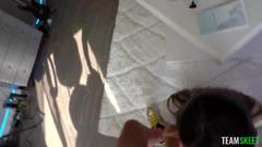 Ela é magra e parece excitada, feliz por estar aqui e por gostar de chupar um pau grande e ser fodida profundamente com uma gozada facial no final.