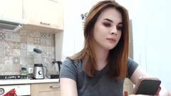 Uma atraente puta transexual com uma cara bonita e mamas grandes senta-se na frente de um laptop e masturba um pinto realmente grande a pedido de seus fãs