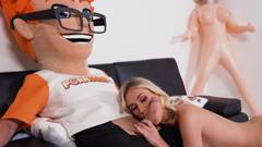 A linda loira vai ter uma sessão de casting pornô com o mascote, ela vai dar um trato em sua linda buceta cremosa e o mascote vai adorar.