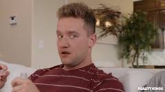A loira Angel vai excitar o namorado de sua colega de quarto, fazer um boquete nele enquanto a morena lava a louça e depois transar com ele no quarto.