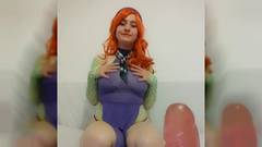 Daphne do Scooby-doo faz um striptease e depois se masturba com um dildo enquanto espera que você a leve num estrangulamento!
