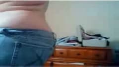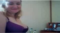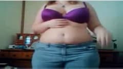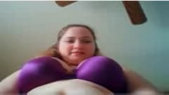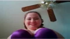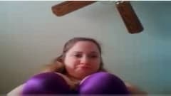 Uma gorda com um enorme par de seios os acaricia e se filma com sua webcam para fazer um homem apreciá-los!