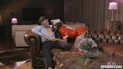 A bela Lana Roy veste uma roupa sexy de enfermeira e deixa seu marido excitado no sofá.