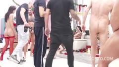 Este é um vídeo dos bastidores de um filme para adultos, mostrando uma grande orgia anal; 10 garotas estão famintas por um pau na bunda!