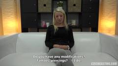 Uma linda loira vai participar de um casting pornô para mostrar como ela chupa delicadamente e o quanto ela gosta de receber em diferentes posições!