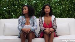 Neste vídeo, veja as duas lindas Demi e Lily compartilhando o grande galo deste homem e levando-o na boca como duas vagabundas