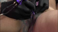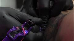 Garota latina faz uma tatuagem de magenta azul no seu clítoris no estúdio de tatuagem. Ela gosta dessa putaria e até come a piroca do tatuador.