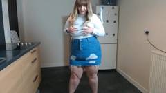 Uma loira BBw com um grande rabo e tetas perfuradas se masturbando