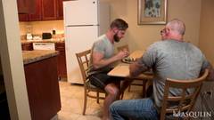 Lance Charger e Brian Bonds, dois papais barbudos baterão galos duros um no outro no sofá vermelho.