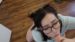 Esta boazona de óculos nos mostrará a suas habilidades orais ao fazer um broche com um dildo enquanto ela se ejacula.