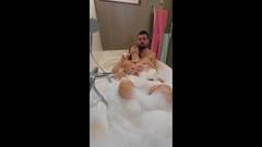 Esse casal francês vai se gravar enquanto o cara bate uma siririca para ela. A agua quente e os dedos do homem fazem o trabalho muito bem.