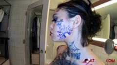 Genevieve Sin é enganada em sua loja de tatuagem, eles vão enganá-la tatuando seu rosto, ela tem um ótimo corpo.