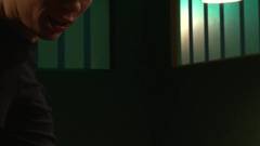 Durante o interrogatório, o cara é algemado e seu pau chupado. Ele então é fodido em cima da mesa e recebe um facial.