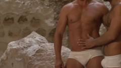 Michael Lucas fode com Max Schutler em cima de uma rocha em todas as posições possíveis. O buraco do cu de Max está faminto pelo pau de Michael.