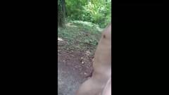 Depois de uma aposta, eu me dispo pela primeira vez lá fora na floresta e me filmo. Meu dominante me pediu para postar o vídeo