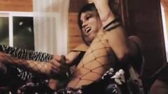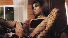 Garota morena trans usando meias arrastão pretas masturba seu pau grande nesse vídeo amador solo. Que garota trans!