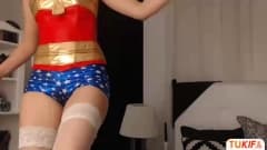 Melody veste uma fantasiazinha sexy, ela vai espalhar seu rabo com um plugue e dançar nua mostrando suas belas curvas e mantendo seus saltos