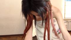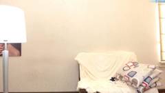 Uma moreninha asiática com peitos pequenos senta-se no chão e masturba sua boceta faminta usando os dedos e brinquedos sexuais.