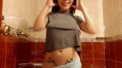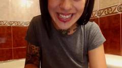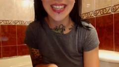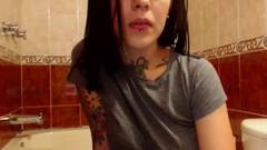 Essa é uma garota tatuada que gosta de agradar seus espectadores mostrando seus peitos nus e fazendo coisas sensuais no banheiro.