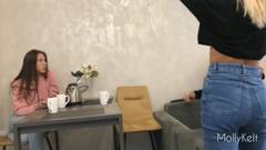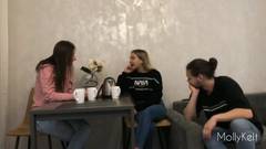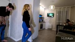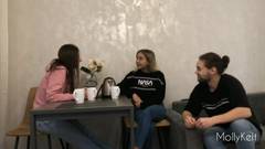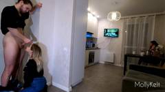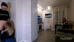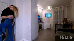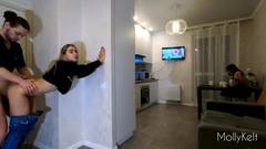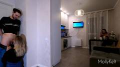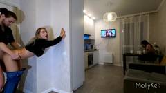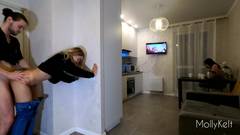 Molly Kelt está em casa com sua amiga e seu namorado. Ela chupa o pau dele e se deixa foder de pé, sem prestar atenção em nada!