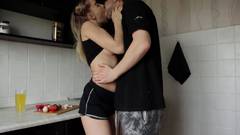Seu namorado excitado não a deixa cozinhar e a convence a chupar seu pau antes de lamber sua buceta e transar com ela no estilo cachorrinho