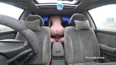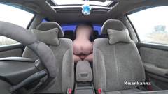 Ela se despe gentilmente no carro até que ele para em um local isolado para encher sua buceta.