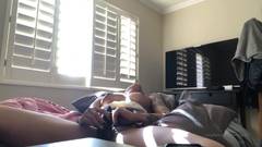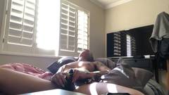 A pequena ébano desfruta de seu brinquedo sexual