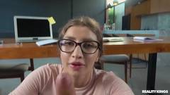 Essa linda garota deve ter uma nota ruim para compensar o fato de estar transando na mesa do professor!