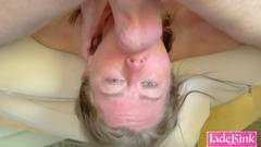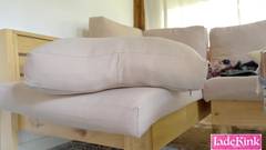 No sofá da sala, ele se sente excitado e coloca seu grande galo branco em todos os buracos dela até despejar uma carga cremosa no seu doce traseiro.
