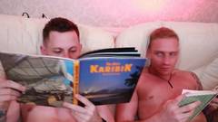 Dois caras fodem suas namoradas no sofá. Estas vadias aproveitam esta oportunidade para se embebedarem antes de receber uma dose de esperma na boca.