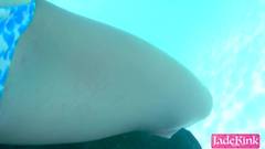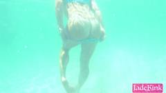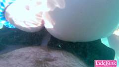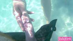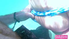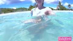 Transa arriscada em público na frente de estranhos numa praia - casal em férias se diverte e ele goza dentro da sua bucetinha doce e a enche de porra