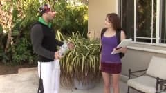 Uma jovem estudante não terá que fazer sua lição de casa, porque ela encontrou algo melhor para fazer: se divertir com seu vizinho!