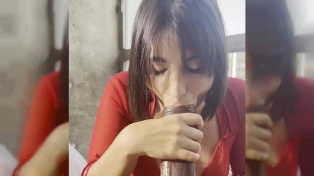 Uma morena se masturba e chupa um belo pau, fazendo-o cuspir seu suco na medida certa, com as cortinas abertas, para o deleite dos vizinhos.