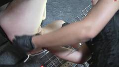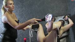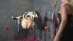 Essas duas lésbicas europeias participam de uma sessão de BDSM. Ela prende a amiga e a chicoteia enquanto faz fisting anal.