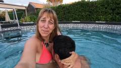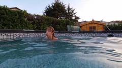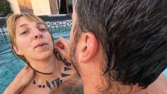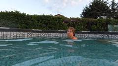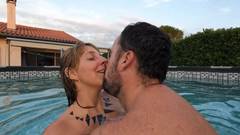 Um casal de naturistas amadores franceses transa nu na sua piscina!