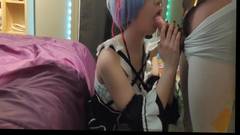 Ela está vestida como uma faxineira japonesa, enquanto ele está vestido como Hansel. Eles se divertem na cama chupando pênis e cavalgando um ao outro.