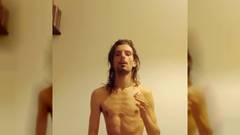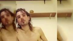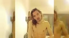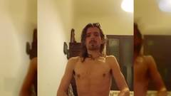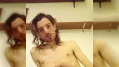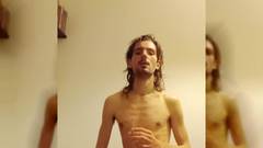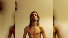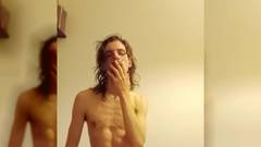 Um belo rapaz se masturba muito até gozar sozinho na sua cama... e bebe o seu esperma... após se masturbar bem com os pés.