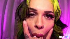 Essa milf de cabelos coloridos recebe esperma em seu rosto
