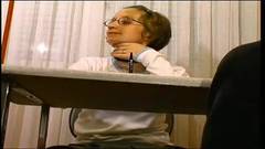 Uma aluna está estudando quando seu professor entra e se oferece para ajudá-la. As duas começam a transar e, em seguida, um colega se junta a elas.