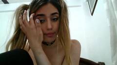 Uma travesti loira com seios pequenos liga a webcam e, em seu show online, ela mostrará aos espectadores como acaricia e soca seu grande pênis!