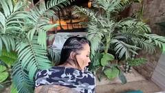 A trans de bunda grande Mariana Reis monta um cacete preto