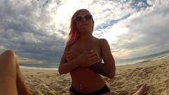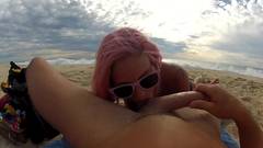 Uma loira está na praia com Johnny Sins. O cara lhe dá um pau enorme para chupar enquanto filma em POV e a vadia faz de tudo para que ele goze!